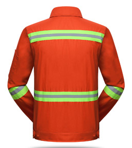一线员工工作服主要是以亮色的橙色的为主,衣服的反光条的多处设计。