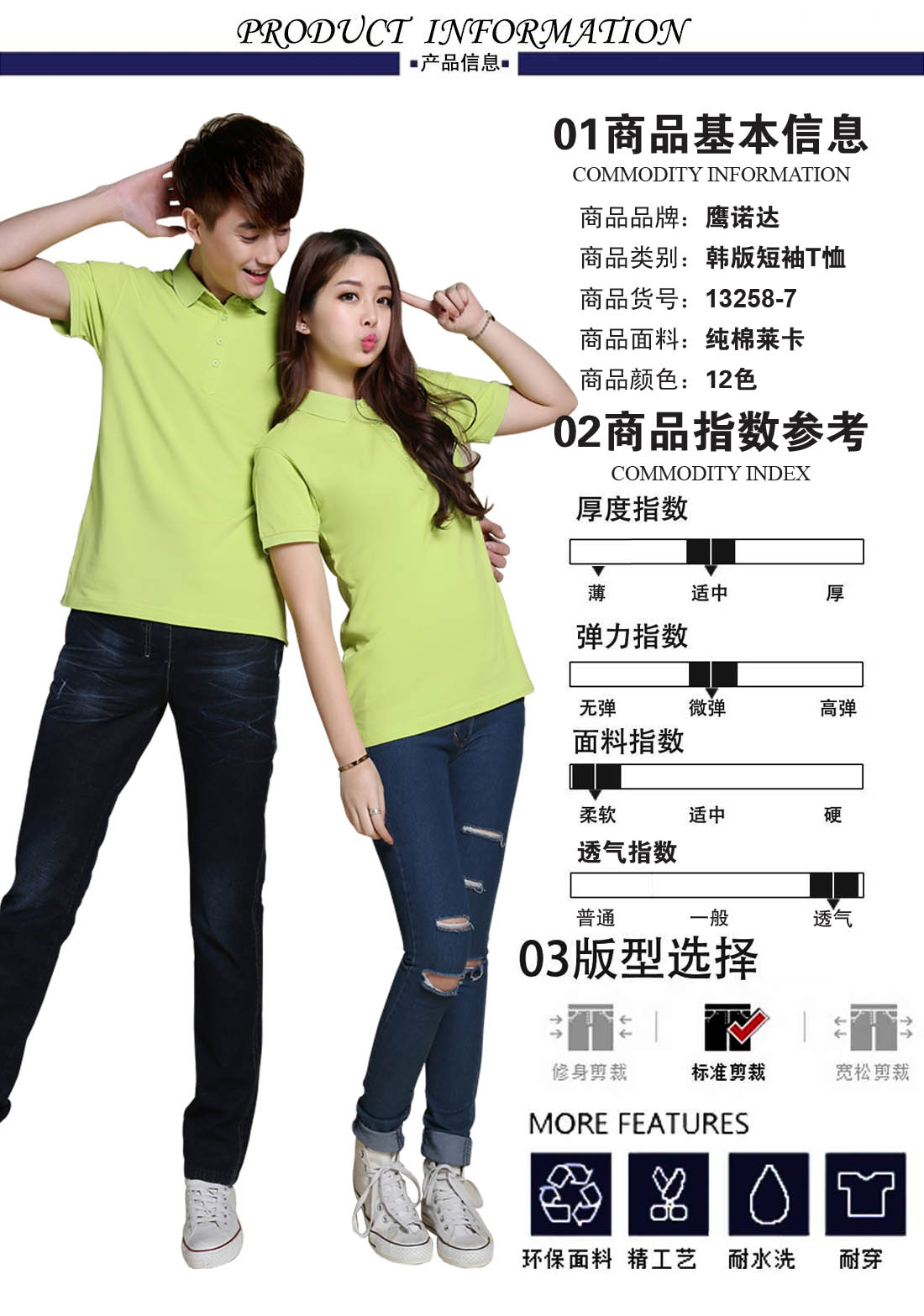 果绿纯棉莱卡t恤衫工作服ID13258-7