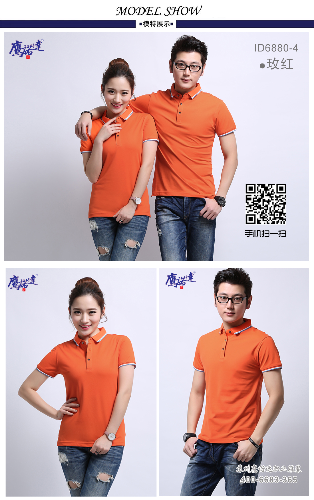 桔色提花翻领超爽蚕丝棉T恤衫ID6880-4